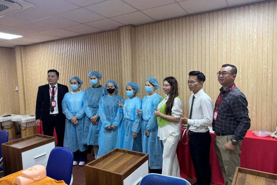 Phòng học được trang bịđầy đủ giường, máy móc, mô hình và thiết bị y học hiện đại, đảm bảo mỗi học viên đều đượcthực hành 100% nội dung đào tạo.